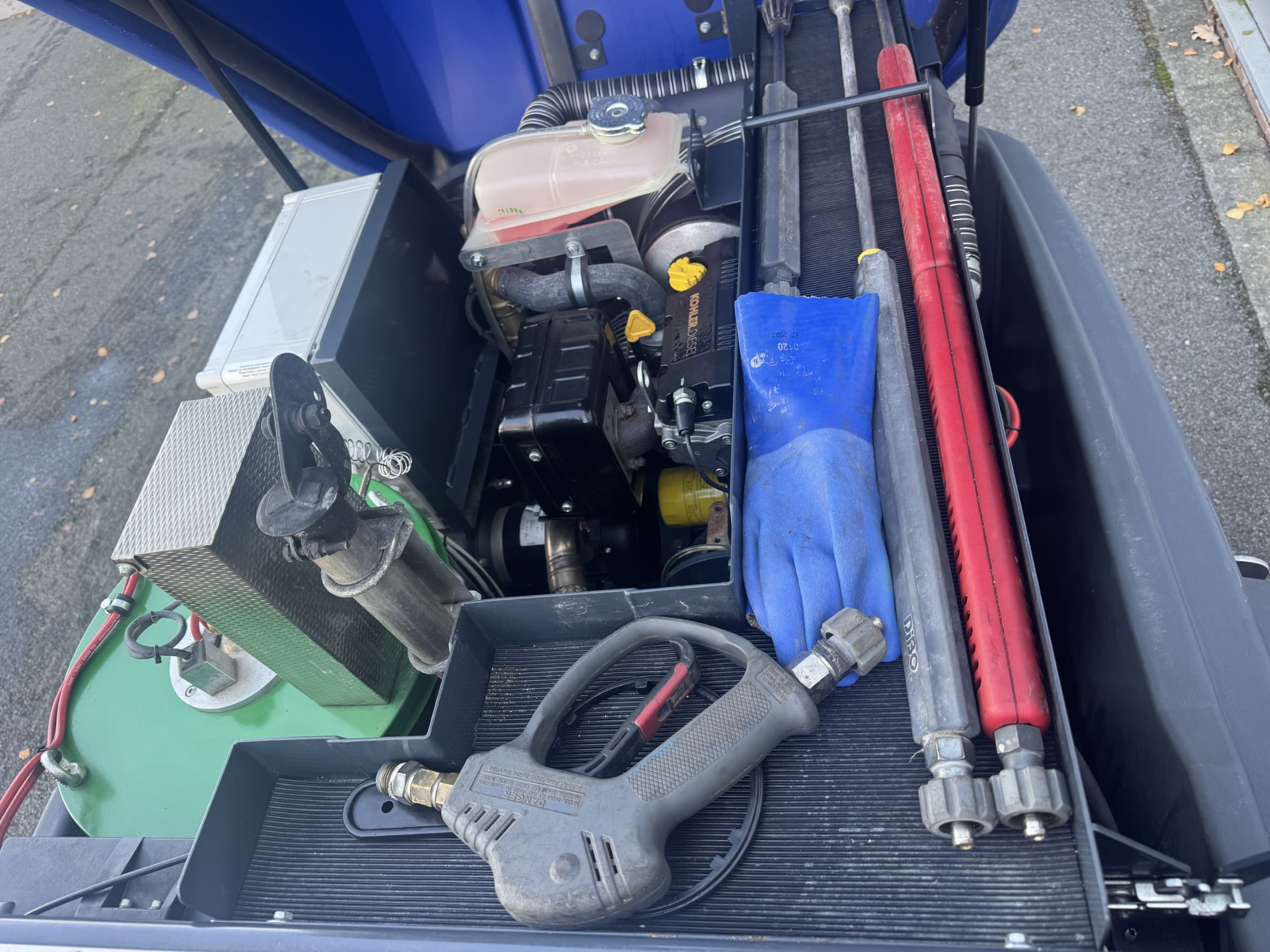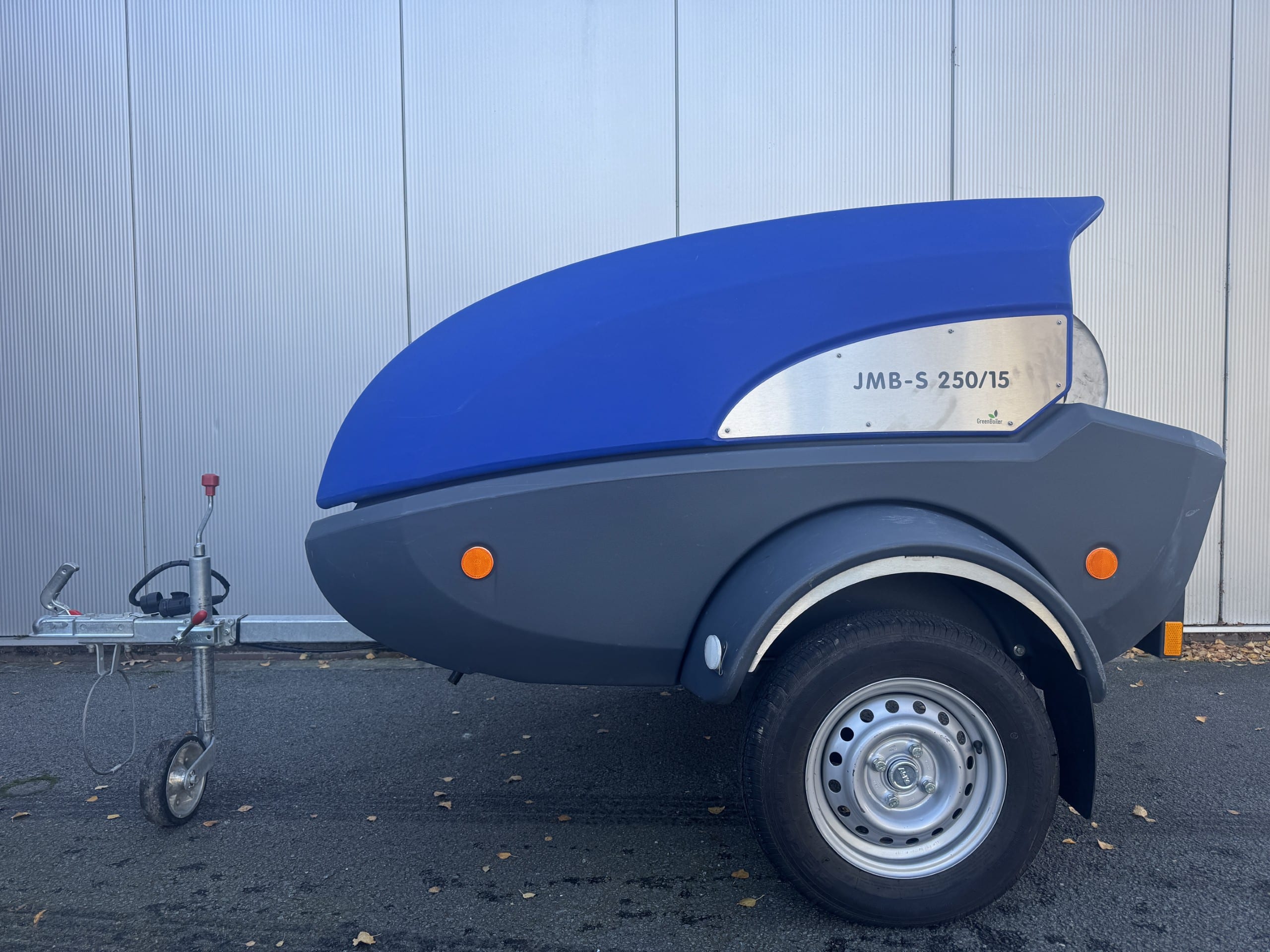 De JMB-S is een ultracompacte mobiele warmwater hogedrukreiniger op trailer mooi voor het oog en binnenin uitgerust met de meest moderne & groene technologieën. Dankzij eigen krachtbron en zelfstandige werking, ook te gebruiken op plaatsen waar geen elektriciteit voorhanden is. Door de keuzemogelijkheid om te reinigen met koud of warmwater onder hogedruk, is deze hogedrukreiniger geschikt voor een brede waaier aan reinigingswerkzaamheden. Een laag zwaartepunt in het midden ter hoogte van de as zorgt voor een optimale gewichtsverdeling wat zich samen met de <750 kg laat voelen in het rijcomfort. Er is geen speciaal rijbewijs vereist om deze trailer te mogen trekken.